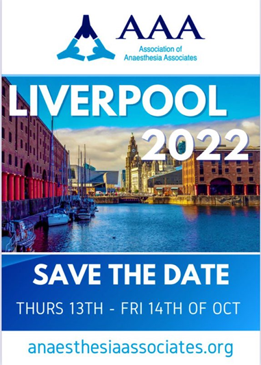 On a final note, expect more communications involving AAs from the AAA in conjunction with the RCoA, HEE and the GMC as we head towards statutory regulation. This is an exciting time for our profession as we continue to develop and grow into an effective part of the anaesthesia workforce and a key part to achieving elective recovery of anaesthesia services across the UK.